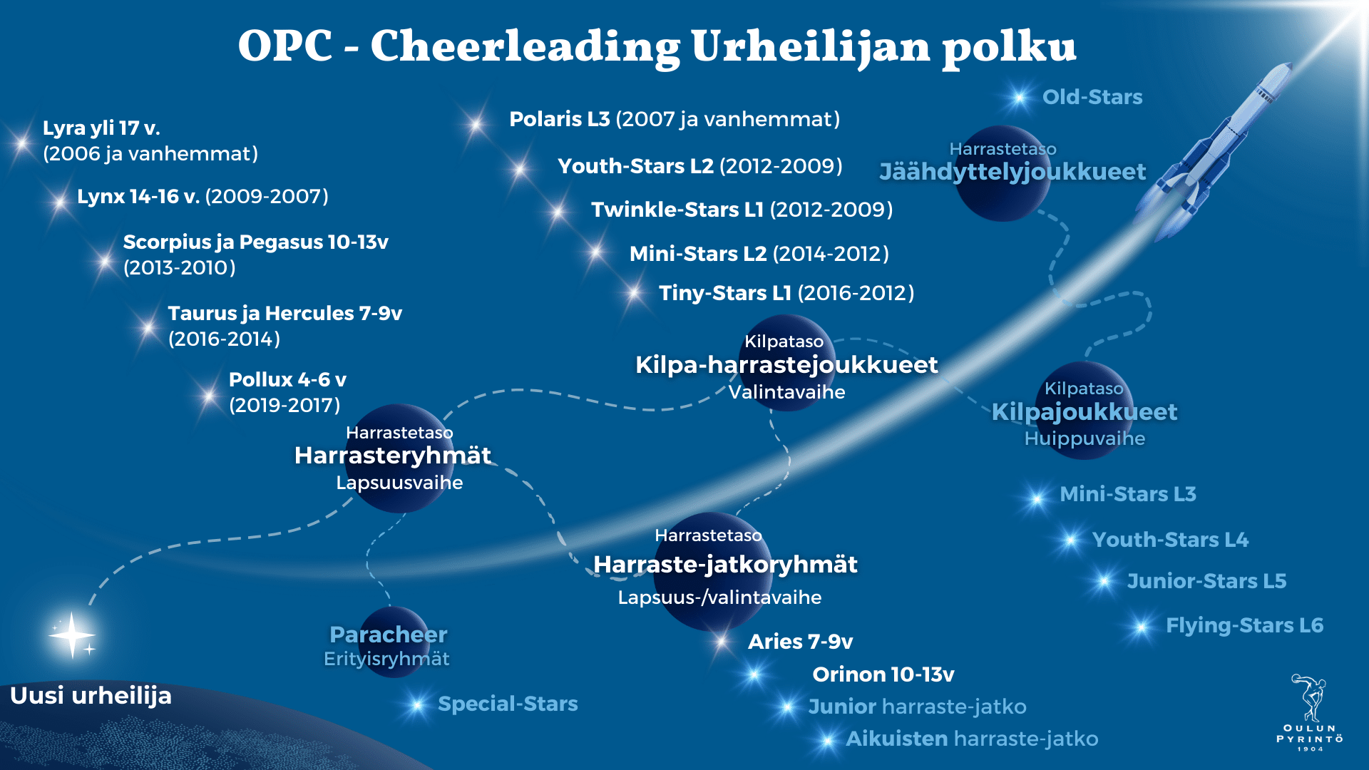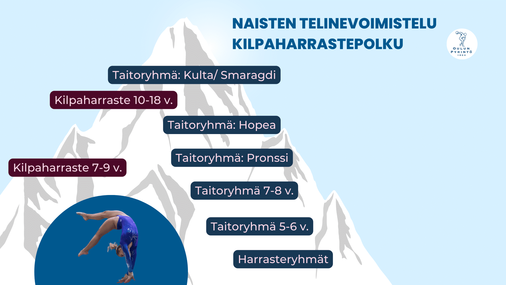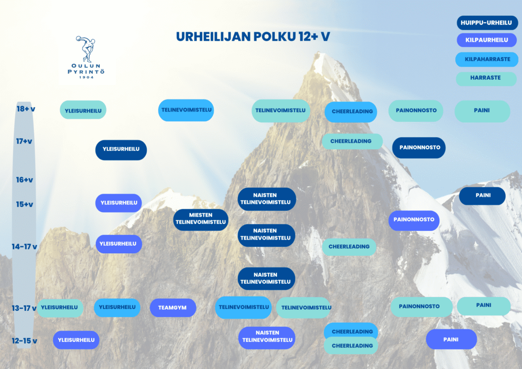 Oulun Pyrintö tarjoaa mahdollisuuden kehittyä aloittelevasta liikkujasta huippu-urheilijaksi cheerleadingissä, painissa, painonnostossa, toiminnallisessa urheilussa, voimistelussa ja yleisurheilussa. Harrastamisen voi aloittaa kaiken ikäisenä ja kilpa-harrasteryhmät tarjoavat innostavan polun myös kilpaurheilun maailmaan. Tutustu lajeihin ja löydä liikkujan tai urheilijan polkusi.